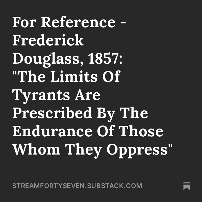 For Reference - Frederick Douglass, 1857: "The Limits Of Tyrants Are Prescribed By The Endurance Of Those Whom They Oppress"